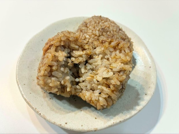 そして加熱終了後。小袋を破った瞬間に、ついにその真価が発揮されます。閉じ込められていた焦がし醤油の香ばしさと、奥深い出汁の香りが、蒸気と共に一気に溢れ出し、キッチン中が和の香りに包まれました。この香りはまさに反則級です。一般的な冷凍焼きおにぎりの中には、中心部が白いままのものもありますが、ロピアのこれは違います。どこを齧っても「出汁の旨み」にたどり着けるのです。