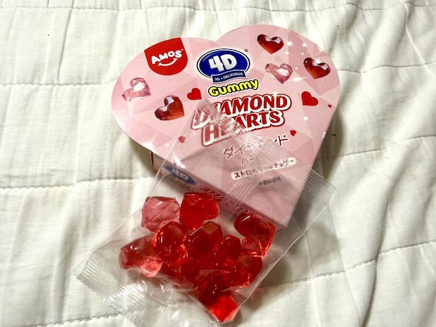 そんな方にお渡しするのに便利なのが、世界的な菓子メーカー・AMOS社の4Dグミ「ダイアモンドハーツ」です。