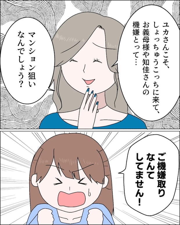 「ユカさんこそ、しょっちゅうこっちに来て、お義母様や知佳さんの機嫌とって・・マンション狙いなんでしょう?」麻里さんに笑顔でそう言われ、「ご機嫌取りなんてしてません!」と反論しました。