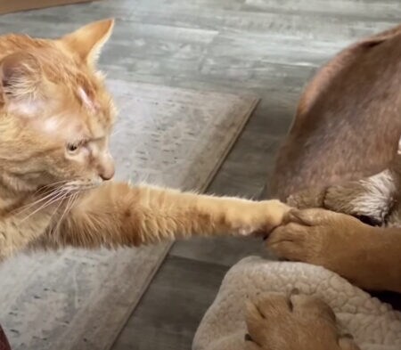 様子を探りながら犬さんの足に
