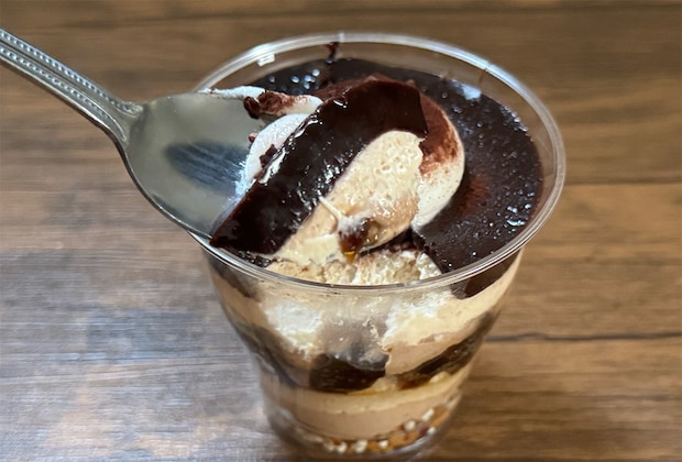 さらに食べ進めると、ほんのり苦いコーヒーゼリーとクリームの組み合わせや、最下層のサクサク食感が楽しめます。