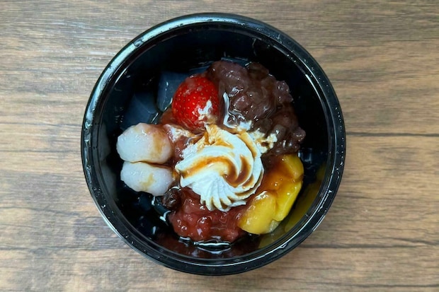 苺やマンゴー、ホイップクリーム、白玉風団子、自家炊き粒餡など、彩り豊かな素材を贅沢に盛り合わせた季節限定あんみつです。