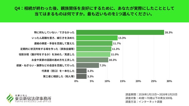 相続後の関係改善で「特に何もしていない/できなかった」28.3%が最多