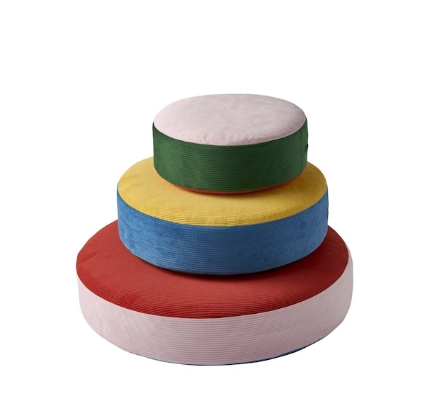 カラフルなフロアクッション3点セットは、塔をつくったり、床に置いてジャンプしたり、座って休んだりと、さまざまな使い方ができます。ひとりでも友だちと一緒でも楽しめるデザインです。子どもの安全を考えたファスナー付きで、安心して使えます。カバーは取り外して洗濯機で簡単に洗えるので、いつでも清潔に保てます。