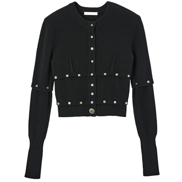 袖や裾を離してショート丈にも。カーディガン¥52,800(ケイル)