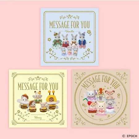 また、合計2,000円(税込)以上購入ごとに、1会計につき1柄1枚までメッセージカード(ランダム全3種)が1枚、