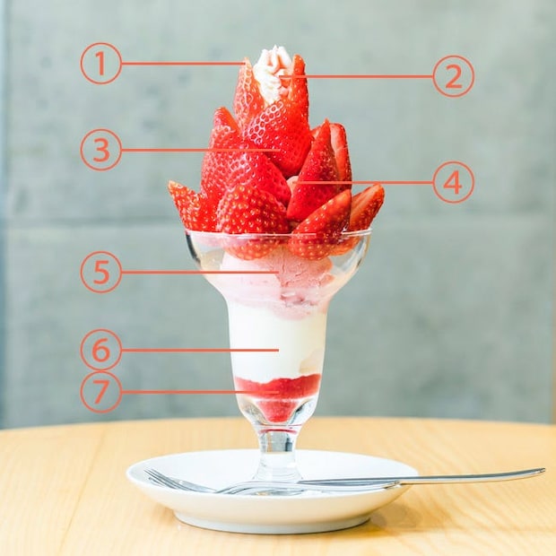 フルーツパーラーゴトーでは、いちごの季節になると複数の品種を組み合わせた“食べ比べ”パフェを展開。