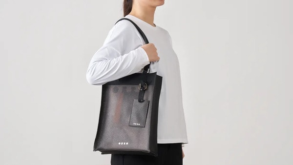 PVCの軽さ・耐水性・耐久性と、本革の重厚感・経年変化。相反する特性を持つ素材を組み合わせるため、縫製方法や素材比率を細かく検証し、その結果、日常使いから旅行まで対応する実用性、PVC単体では得られない上質な佇まい、ユニセックスで使えるミニマルなデザインを兼ね備えたプロダクトが完成した。
