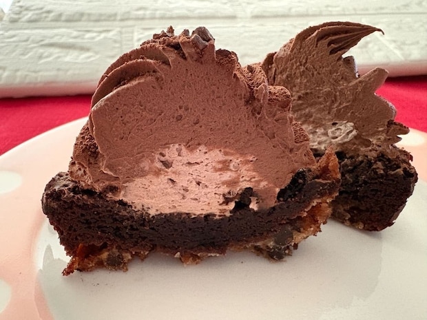 美しい形でトッピングされたチョコクリームが高級感を漂わせる一品。重厚感のあるクッキーガトーショコラで、食べごたえのあるスイーツです!