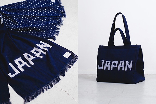 今回の出展では、「JAPAN」ロゴや数字、アニマル柄など、思わず手に取りたくなるような文字絣・柄絣を用いたバッグや小物を展示する。