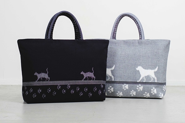 織物で可愛い猫と犬を表現する「おさんぽシリーズ」