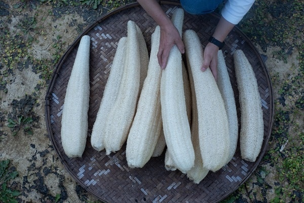 「へちまたわし」は、無漂白・天日干し・昔ながらの漬け込み製法で仕上げた製品。ヘチマの繊維を自然のまま活かした、やさしく、しなやかな使い心地が特長だ。