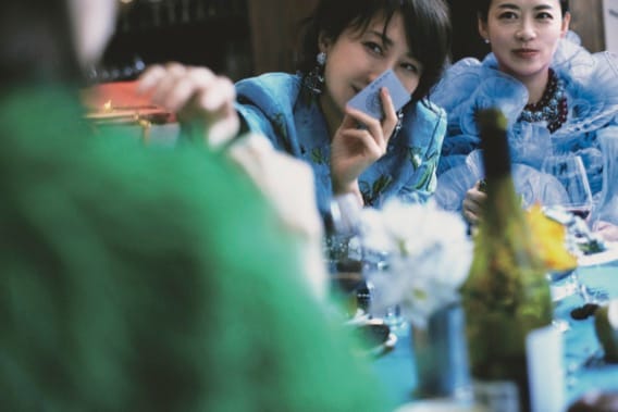 平尾さん:ジャケット¥34,999、ネックレス各¥7,999、蛙リング¥3,999、風間さん:ジャケット¥16,999、蛙イヤリング¥5,999、ブレスレット¥9,999、酒井さん:ブラウス¥6,999、スカート¥16,999、大貫さん:ドレス¥9,999、イヤリング¥5,999、蛙ネックレス¥12,999、大塚さん:ブラウス¥9,999、ネックレス¥5,999、蛙バングル¥8,999、顔形リング¥4,999(全てIRIS APFEL×H&M/H&M カスタマーサービス)