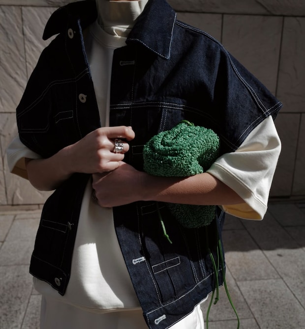 スタイリングにプラスするだけでこなれ感が演出できるデニムベスト。二の腕までかかるスリーブや立体的なシルエットなどこだわりの詰まった1着は、シャツやカットソー、ドレスなどどんなコーデにも合わせやすい優秀アイテム。ちょっとカジュアルダウンしたいときに。デニムベスト¥30,800(マチャット)