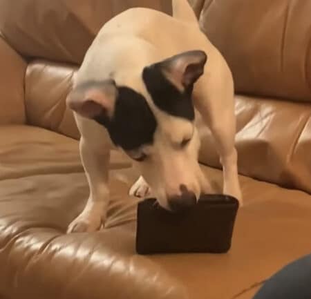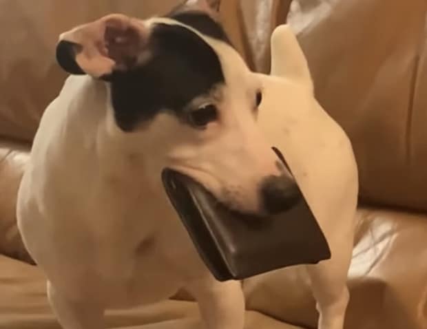 ソファに置いてあった飼い主さんのお財布を発見。