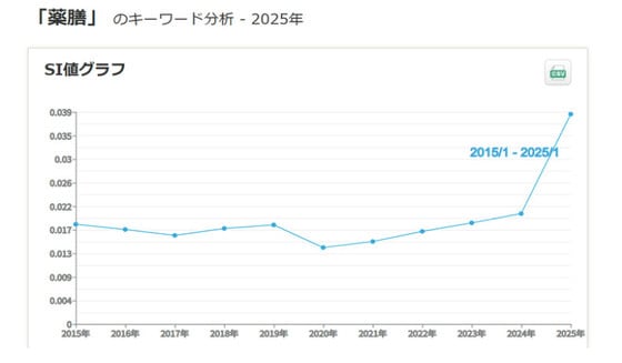 クックパッドの検索データ分析ツール「たべみる」でも、「薬膳」の検索数は前年比132%と急上昇。 薬膳は本来、病気を防ぐための食養生と、体の不調を整える食療の両方を担うものですが、最近では「美肌」「むくみ」「腸活」などのキーワードと共に検索される傾向が見られ、健康維持や美容のために取り入れる人が増えています。