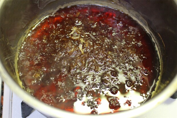 2. 小鍋に酒とみりんを入れ、中火でアルコールを飛ばすように軽く煮きります。しょうゆを加え、沸騰直前で火を止めます。