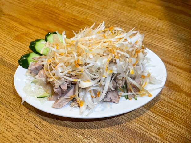 こちらは「ねぎチャーシュー」。チャーシューが見えないくらい白ねぎがのっていて、ごま油がかけてあります。ネギがピリッとしてやわらかいチャーシューと一緒に食べるととっても美味しいです♪