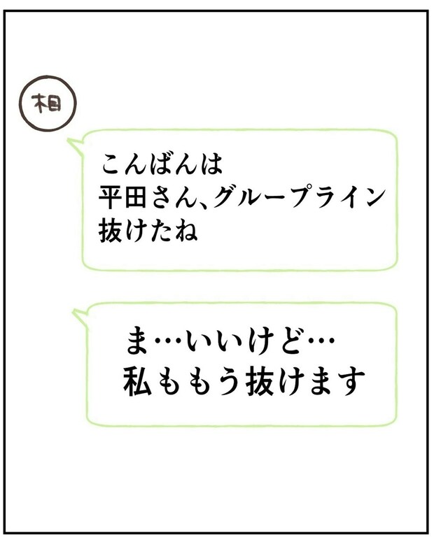その後、平田さんはグループLINEからも抜けます。すると、もう1人のママ友・相川さんからメッセージが届きます。
