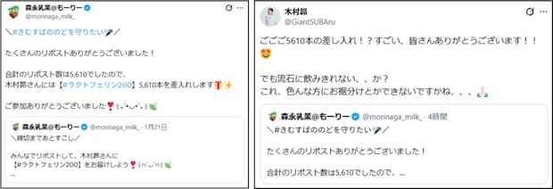 森永乳業がX(旧Twitter)上で展開した「#きむすばののどを守りたい」キャンペーンは、声優・俳優として幅広く活躍する木村昴さんの“のど”を気遣う呼びかけからスタートしました。ファンが参加できる差し入れ企画として実施されたこの試みには、想定を大きく上回る反響が寄せられ、集まった「森永ラクトフェリン200ドリンクタイプ」は5,610本にものぼったといいます。しかし、この企画が印象的だったのは数字の大きさだけではありません。差し入れが集まりすぎたことに対し、木村さん自身が「これは自分だけでなく、みんなにも届けたい」と発信したことをきっかけに、企画は新たな展開を迎えます。SNS上の共感が、リアルな場での“おすそわけ”へとつながった今回の取り組み。その背景には、のどを大切にするというシンプルでありながら、多くの人が共感できるテーマがありました。