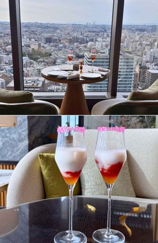 冬のロビーラウンジは、天気のよい日には富士山が姿を見せることもあるそう。この日も、横浜の街並みの彼方にうっすらと富士山を望むことができました! ゆったりと座れる1人がけソファの席に通していただき、まずはウエルカムドリンク「ジュエル フレーズ」を。