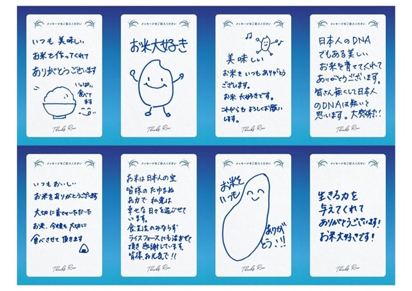 同ページでは、イベントで集まった来場者による直筆メッセージを通じて、米を育てる人々への感謝の声を紹介している。