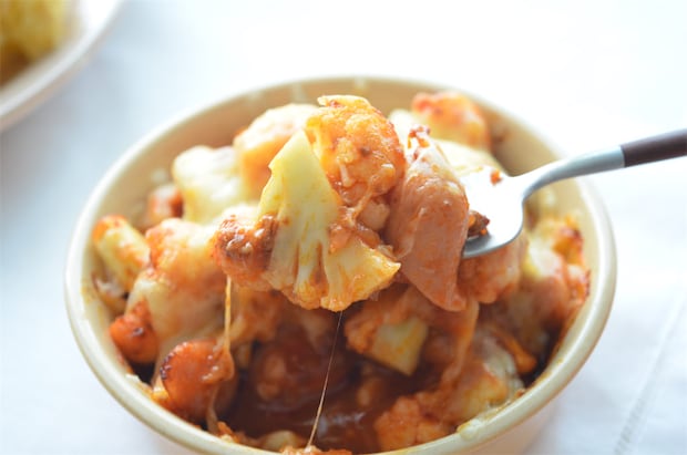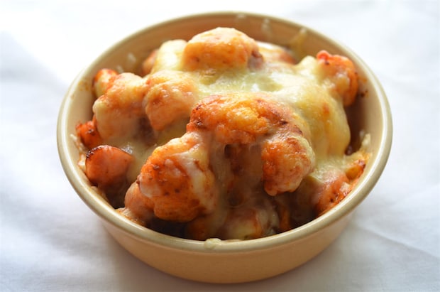 衣のサクサク食感とカリフラワーのコリコリ食感が相まっておいしい~。カリフラワー自体がシンプルな味なので、揚げることでコクがプラスされ、立派なおかずになっています。