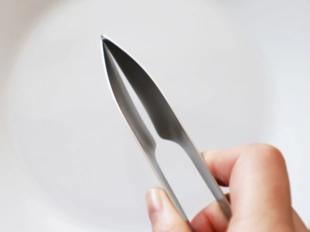 独特な三⾓型の先端で細かいものを、辺でザッと具材をキャッチできます。程よい開きがあるので、とんかつ豚⾁など厚みがある⾷材のキャッチにも使えます。お⾁や⿂の下味をつける時に使えば、⼿も汚さず便利。毎⽇活躍してくれる逸品です。