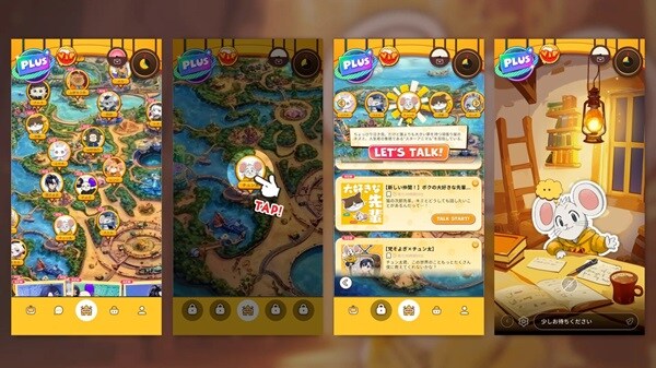 アプリを開くと、登場キャラクターたちが暮らす世界が広がる。
