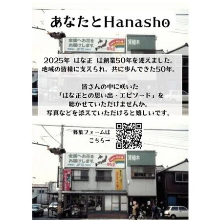 さらに、「あなたとHanasho 思い出を募集します」を実施。創業50年の歩みのなかで、利用者とはな正をつなぐエピソードや写真を募集する。思い出は、募集フォームまたは店頭の専用応募用紙で受け付け中。写真・エピソードを添えて応募しよう。