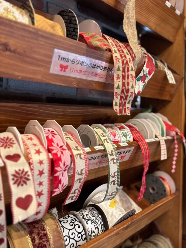 「クリスマスランド」というクリスマスアイテムを扱うお店で私もリボンをお土産に購入しました。