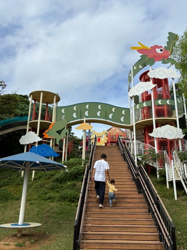 「このまま空港行くのはちょっと名残惜しい…」そんなときにぴったりだったのが、おうのやま公園でした。「おうのやま公園」は、那覇空港まで車やタクシーで約5分、ゆいレールで約6〜7分+徒歩という好立地!