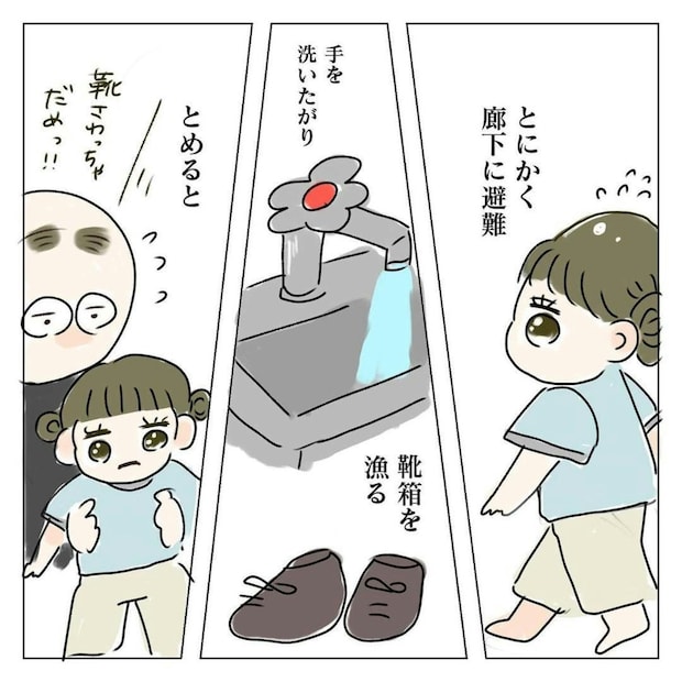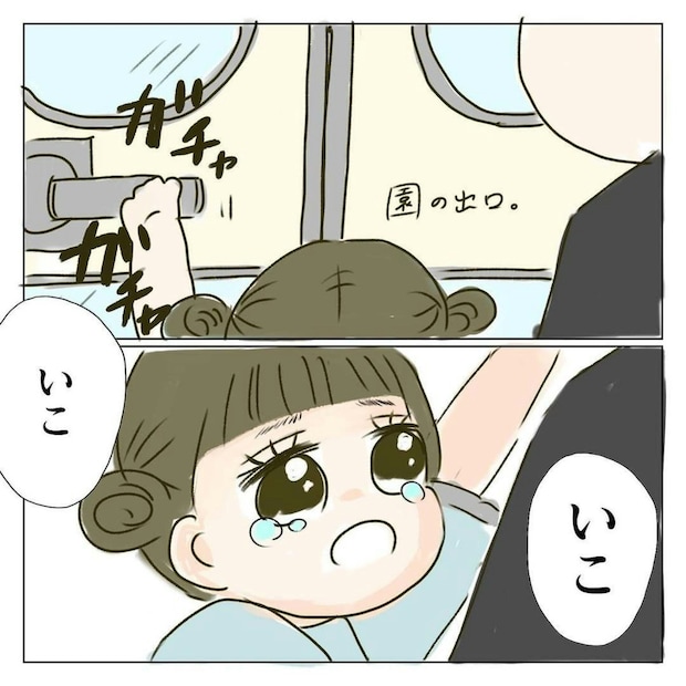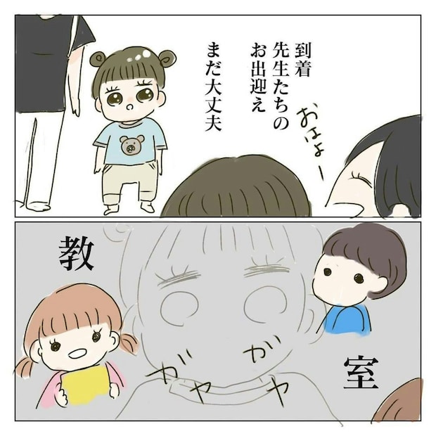療育へ向かう車の中では、ご機嫌だったぴぴちゃん。しかし教室に入ると、人見知りや場所見知りもあり、パニックになってしまいました。そんなぴぴちゃんを、剥がれ鱗さんは困りながらも必死になだめました。