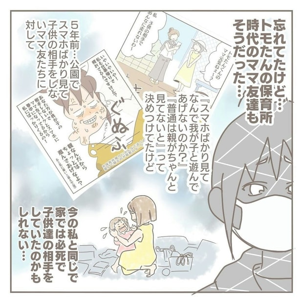 以前は自分もスマホに夢中な親に違和感を抱いていたことを思い出したヨカさん。公園での様子だけで子育てのことを決めつけていたと反省するのでした。