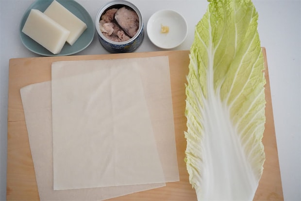 お正月に余ったお餅が大活躍「サバ缶と白菜、餅の春巻き」