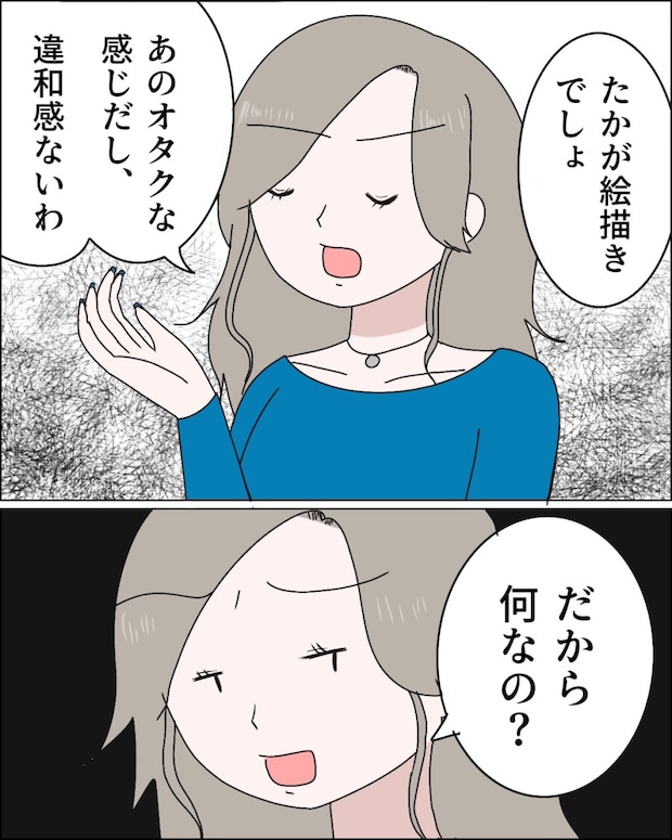 ですが、親戚にあの緑乃トモヨシがいることの凄さが麻里さんにはまるで伝わりません。私がここまで驚いているのを馬鹿にするような態度で、「たかが絵描きでしょ、あのオタクな感じだし違和感ないわ・・・だから何なの?」と冷たく言い放ちました。