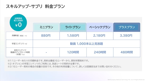 KKCompany Japan合同会社(以下 KKCompany)は、同社が提供するマルチメディア対応AIプラットフォーム「BlendVision AiM(ブレンドビジョン・エイム)」に、社員向け研修コンテンツをバンドルした新サービス「スキルアップ・サプリ」(商標登録出願中)を追加し、1月28日(水)より提供を開始した。
