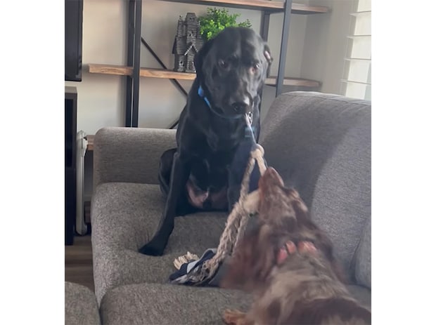 黒い犬の方が力が強すぎて