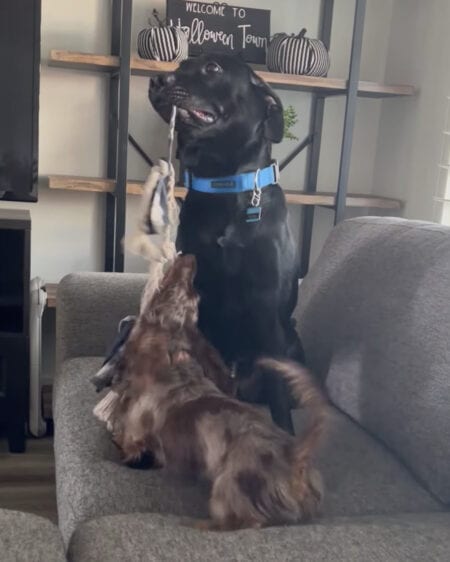 一組の犬たちが特別な遊びを楽しんでいます。