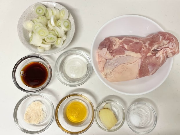 長ねぎの⻘い部分としょうがをみじん切りにし、その他の材料と混ぜ合わせておく。