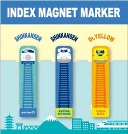 10月6日(月)には、「0系」「N700S」「923形ドクターイエロー」の3種類セットの「マグネットマーカー」も登場。2つ折りで厚みわずか0.5mmの超薄型設計、インデックスずれ防止の専用抜き型を採用、高い耐久性と優れた視認性を実現する。