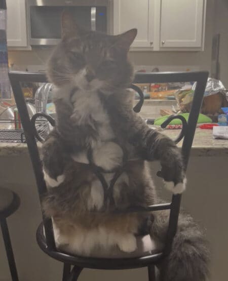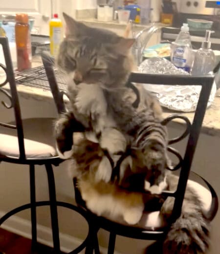 体を完全に椅子に委ねてリラックスしている猫さん。