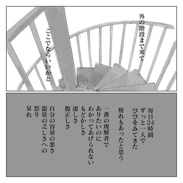 剥がれ鱗さんは、誰もいない外の階段へと向かいました。