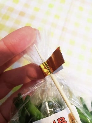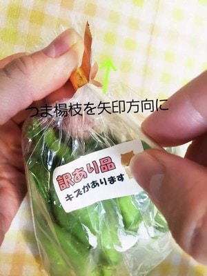 1. まず、袋とテープの隙間に、爪楊枝の先を入れます。
