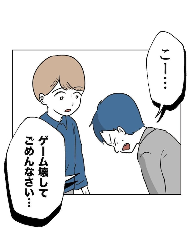 玄関に入るなり「申し訳ございませんでした」と深く頭を下げたルー君パパ。パパに続き、すぐにルー君も謝罪しました。家に上がる時には、「お邪魔します」と丁寧に挨拶するルー君に、モモさんは思わず驚くのでした。