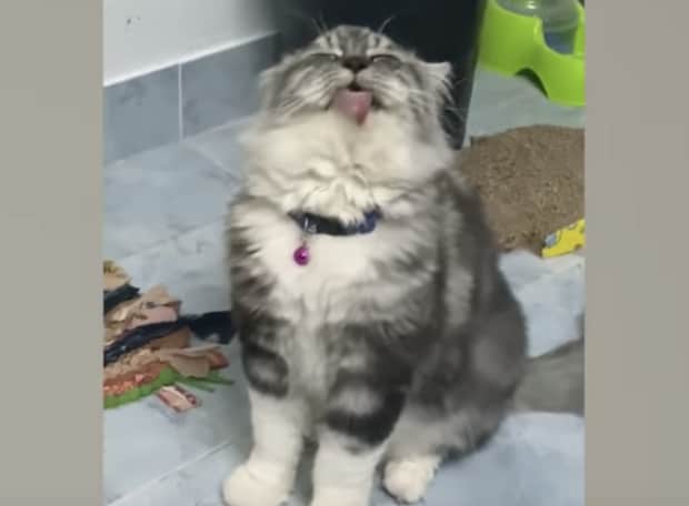 空中をペロペロ、エア毛づくろい。