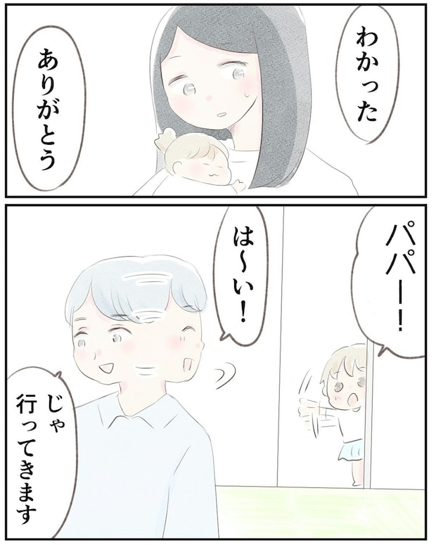 お菓子がなくなったことがわかると、夫がコンビニに行ってくると言ってくれました。夫は、次女を寝かしつけているゆうさんにも気遣う言葉をかけてくれます。