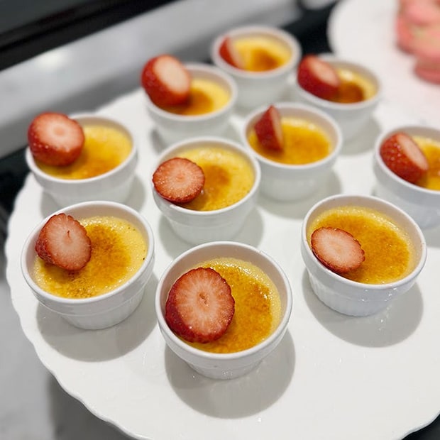 絶対においしそうな見た目の「ストロベリークレームブリュレ」。表面はサクサクで、中にスプーンを入れると、クリーミーなカスタードクリームがいっぱい。とろける口当たりにうっとりです。中にはいちごがぎっしり入っていて、サプライズ感がありますね。