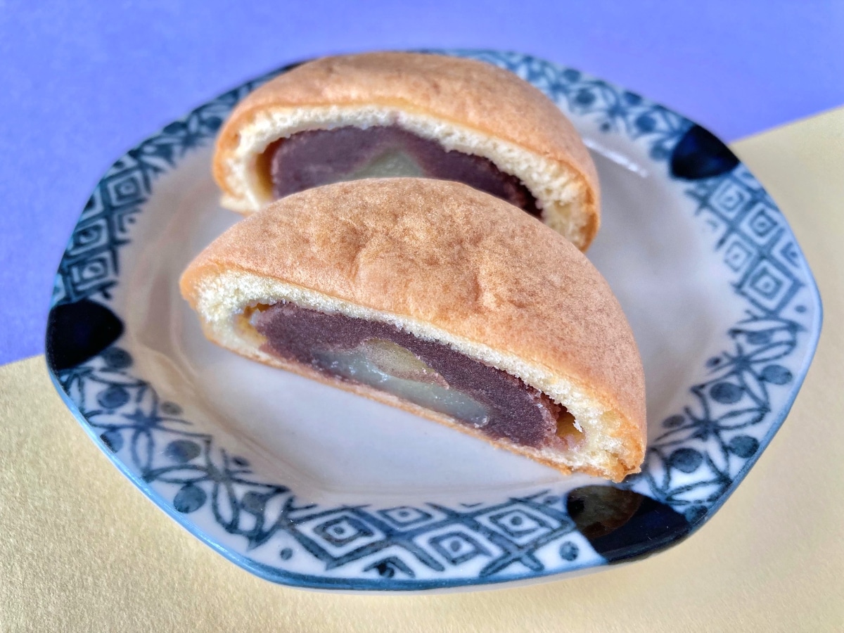 バター入りクリームは独特な風味と味わい。正直、バターの風味は感じられませんでした。とはいえ、生地と餡(あんことバター入りクリーム)を一緒に食べると和菓子として成立しており、塩味と甘さのバランスがよくて美味しかったです。