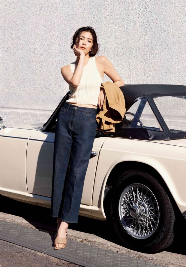 セオリーの新作デニムパンツをはいたみっこのコーディネートが堂々の1位。センタープレスの入った程よくスリムなデニムパンツはカジュアル過ぎず端正な印象に。「大人シンプルな感じが好き」「みっこに似合ってる。肌見せ具合もヘルシーでいい!」と大好評。今すぐ真似できそうなシンプルスタイルも人気の理由のよう。